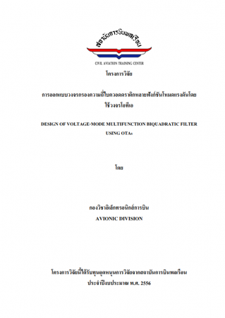 การออกแบบวงจรความถื่ไบควอดดราติกหลากฟังก์ชันโหมดแรงดันโดยใช้วงจรโอทีเอ:Design Of Voltage-Mode Multifunction Biquadratic Filter Using OTAs